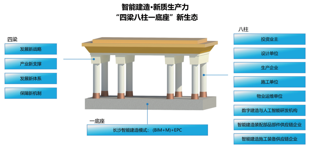 近年来,湖南省长沙市深入贯彻党的二十届三中全会精神和住房城乡建设部有关工作部署,以“政策领航、体系引领、场景驱动、平台支撑、科技赋能、人才保障”六大创新为抓手,因地制宜、先行先试,积极探索智能建造发展路径,强力推动智能建造产业现代化高质量发展。 政策创新领航,以“三个维度”强化政策保障 一是强化纲领性文件引领。在《关于推动智能建造与新型建筑工业化协同绿色低碳高质量发展行动方案》基础上编制发布《长沙市智能建造与新型建筑工业化协同发展三年行动方案(2024—2026年)》,明确未来三年的工作目标和重点任务,通过政策引导、产业链培育、技术路线推进等措施,加快形成产业发展新格局。配套印发了《2024年智能建造和新型建筑工业化高质量发展十大工作要点》,形成系统化工作推进机制。 二是健全支撑性政策体系。围绕BIM正向设计、试点示范打造、EMPC(装配式建筑领域的一种工程总承包模式)、建筑产业互联网、数智工地、“一企一策”、数字人才培育等关键环节,密集推出《关于印发〈长沙市智能建造工程全过程工程咨询服务导则(试行)〉的通知》《长沙市新型建筑工业化评价管理工作实施办法》《关于支持柔性智能生产和智能装备产业集群创新发展的十条措施》《关于健全完善数智工地体系建设提升建设工程本质安全管理水平的实施办法》等18项政策文件,形成健全的支撑性政策体系。 三是完善激励性保障措施。长沙市财政2024年定向安排400万元配套资金支持场景打造、基地培育、技术创新、课题研究、数改智转和宣传推介等工作开展,出台《关于组织智能建造及装配式产业基地申报2024年数改智转试点企业的通知》等系列激励保障政策文件,以容积率优惠和财政补贴为杠杆,进一步激发市场活力,助推产业升级。 体系创新引领,以“四梁八柱一底座”打造产业集群 长沙市锚定建筑业高质量发展这个基点,以“四梁八柱一底座”为体系,构建智能建造产业发展新生态。 一是以“四梁”为纲。围绕智能建造发展新图景,从发展新战略、产业新模式、市场新体系、保障新机制四个方面整体谋划,确定了2025年、2026年、2030年智能建造产值分别突破2000亿元、3000亿元、5000亿元的战略目标。 二是以“八柱”为用。创新构建“八大新型责任主体”,在原有责任主体基础上,新增物业运维单位、数字建造与人工智能研发机构、智能装配式建造部品部件产业链企业、智能建造施工装备供应链企业,形成覆盖全产业链的协同网络。 三是以“底座”为支撑。创新提出“(BIM+M)+EPC”新型建造方式和建设管理模式,以数字(BIM)串联为实现路径,以工业生产(M)为实施载体,以集约管理(EPC)为实践手段,实现设计、生产、施工的一体化管理,达到“1+1+1>3”的效果。 智能建造·新质生产力“四梁八柱一底座”新生态示意图 场景创新驱动,以“五大应用场景”树立项目标杆 一是出台项目评价标准。2024年2月,长沙市住房和城乡建设局发布《长沙市智能建造项目评价技术导则》,根据不同建筑规模和使用需求,四级赋能,层层迭进,逐步形成“BIM+装配式+智能生产+智能施工+智慧运维+智慧城市运营”的1.0—5.0五大智能建造应用场景,为示范项目打造提供路径。 二是加强示范项目培育。依托《长沙市智能建造项目评价技术导则》,从设计、生产、施工、运维端赋能打造智能建造项目。2024年,分两批遴选发布示范项目17个(首批12个、第二批5个),另有24个项目入选2024年湖南省智能建造项目清单。其中,湖南师范大学桃花坪校区学生宿舍等7个项目采用BIM正向设计,显著提升了设计质效;湖南省人民医院马王堆院区住院门诊医技综合楼项目打造智慧运维4.0智能建造应用场景,该项目基于BIM模型建立的数字孪生模型移交后期物业运维单位,实现三维全景智慧运维。 三是发布应用场景专著。2024年11月,联合湖南省建筑设计院发布深入探讨智能建造应用类专著《从0到1:智能建造·场景驱动》,系统阐述了智能建造五大应用场景,梳理了智能建造关键技术,提供了可借鉴的示范场景案例。 平台创新支撑,以“八大平台”搭建数字基座 一是搭建“五大研发中心”。依托行业领军企业,打造解决智能建造关键问题的“五大研发中心”,即BIM设计研发中心、数智工地研发中心、柔性智能生产研发中心、绿色农房研发中心及智慧排水研发中心,为建筑全生命周期科技赋能。例如,以湖南省建筑设计院为技术依托,打造基于BIM的数字孪生运维治理体系研发中心,为建筑后期运维乃至城市整体运营提供平台支撑。 二是构建“八大平台”。以市场需求为导向,依托龙头企业技术优势,通过“数字技术+”“人工智能+”等创新模式,打造八个串联协同、资源共享的通用型市场数智平台,即房地一体化平台、BIM正向设计协同平台、现代柔性智能生产技术平台、数智工地管理平台、数智物业管理平台、建筑领域产业互联网平台、智慧排水监测平台、绿色农房互联网服务平台,为建筑行业转型升级注入强劲动能。以三一筑工研发的现代柔性智能生产技术平台为例,通过技术支持助力50多家PC(Precast Concrete,简称PC,预制混凝土)工厂完成工业化改造,基本实现构件生产效率提升30%、用工减少50%目标。 长沙数智物业平台 绿色农房产业服务平台 三是成立智能建造研究院。2024年11月,由三
